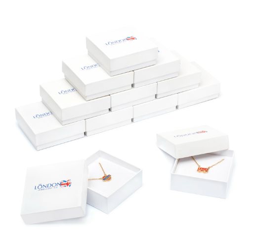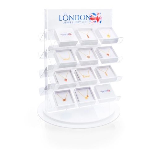 We offer a free acrylic jewellery stand with your first order so you can effectively present and promote sales, and maximise display area. Not only is our stylish, double sided and rotating jewellery display space saving, it also elegantly holds and showcases 32 fashionable pendants.G I F T B O X
